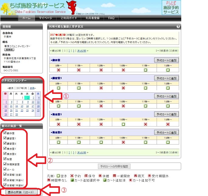 ○画面の、幕張コミュニティセンターの「選択」をクリック。