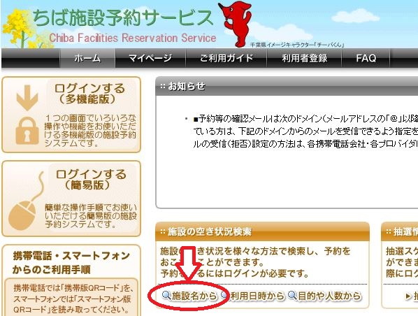 「施設予約の空き状況」 (左の文字をクリックすると、新しいウィンドウが開きます。)