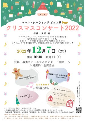 クリスマスコンサート開催します!「お客様をお迎えするコンサートは実に3年で久しぶりの対面コンサート、お子さま達の歓声が楽しみです」とママン・シーウインド ピヨコさんがおっしゃっていました!幕張コミュニティセンタースタッフ […]