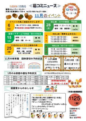 11月13日(日)9:45~15:00 幕張コミュニティセンターにて開催いたします!! 3年ぶりの開催です!例年のコミュニティまつりよりは、縮小されておりますが、サークルさんの素敵な発表会や展示品などは圧巻です。ぜひ、お […]