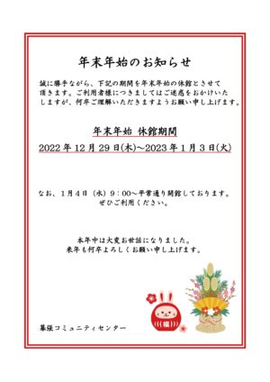 いつもご利用ありがとうございます。2Fの全エアコンが故障しましたが、本日、修理完了いたしました。2Fの諸室をご予約頂いておりましたご利用者様には、大変ご迷惑をおかけいたしました。通常通り、ご予約いただきました諸室をご利用 […]