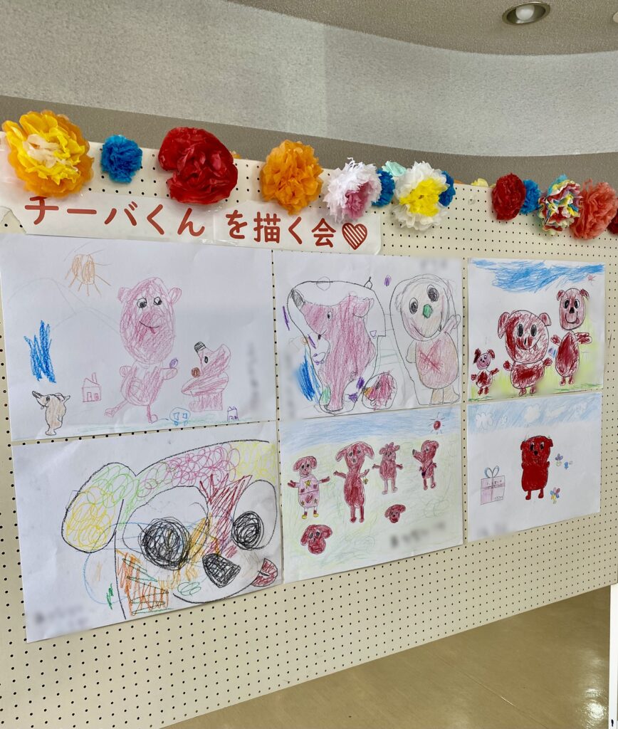 1月に開催したイベント「チーバくんを描く会」でお友達が書いてくれた絵をロビーにて展示しております。可愛いくて、とても上手な絵です!ロビーが華やかになりましたよ~!!