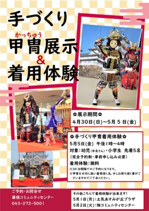 5月5日(金)こどもの日 手づくり甲冑展示&着用体験♪