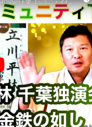立川流落語家 真打 立川平林 師匠をゲストに、第105回千葉コミュニティTVを幕張コミュニティセンターから公開生放送!第5回立川ひらりん千葉独演会「談志の一言金鉄の如し」直前スペシャル番組!! 安来節どじょうすくい日本一 […]