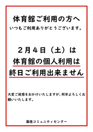 体育館ご利用の方へ 2月4日・25日は、個人利用が出来ません。