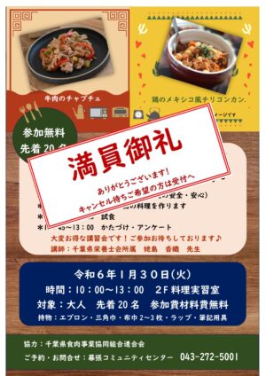 1月30日(火)「食肉料理講習会」満員御礼!!