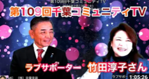ラブサポーター竹田淳子さんをゲストに、第109回千葉コミュニティTVを千葉市花見川区畑コミュニティセンターから公開生放送!