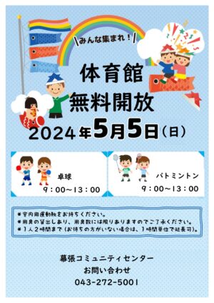 5月5日(日)体育館無料開放!!