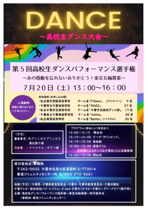 2024年7月20日(土)第5回高校生ダンスパフォーマンス選手権~あの感動を忘れないありがとう!東京五輪幕張~!!参加校決定!!