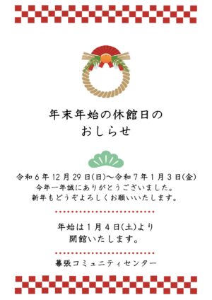 1今年は大変お世話になりました。12月もイベント盛りだくさん♪大きなクリスマスツリーも飾ってます!近くにお越しの際はお立ち寄りください♪幕張コミュニティセンターでおまちしております。