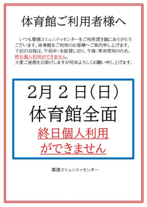 2/2体育館は終日個人利用ができません