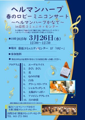 3月26日(水)ヘルマンハープ 春のロビーミニコンサート~ヘルマンハープかなで~ 開催