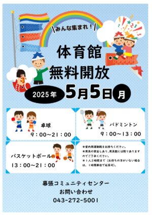 5月5日(月)体育館無料開放!