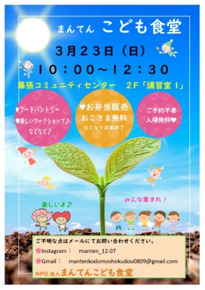 3月23日(日)こども食堂OPEN♪
