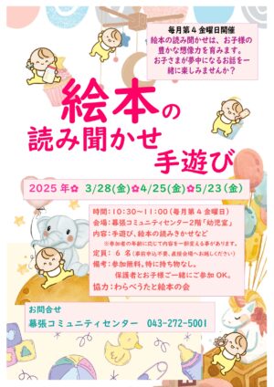 わらべ歌と絵本の会~絵本読み聞かせ~3/28・4/25・5/23(第4金曜日)開催♪