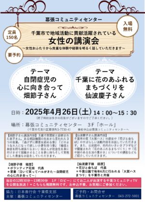 4/26(土)千葉市で地域活動に貢献活躍されている女性の講演会