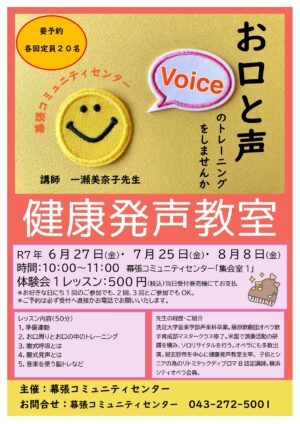 6/27(金)・7/25(金)・8/8(金)健康発声教室開催!