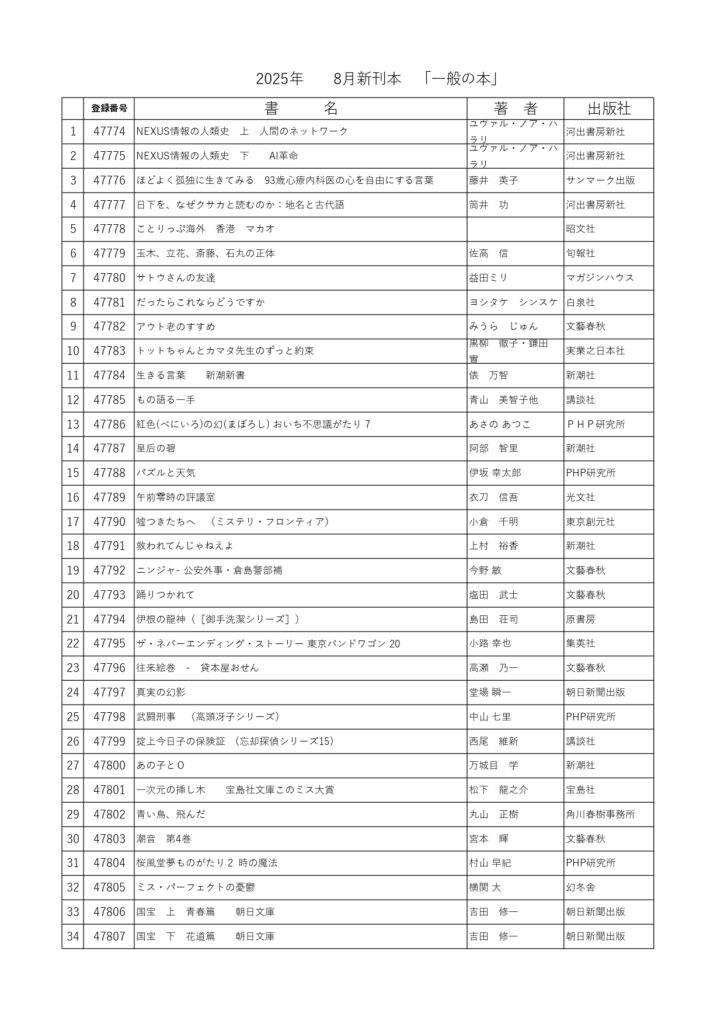 8月の新刊のご案内です。話題の新刊、ご要望のあった新刊が入荷しています。この機会にお立ち寄りください。