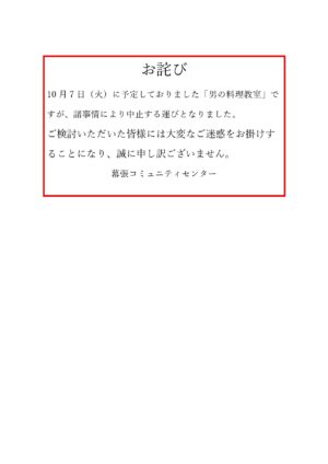 【開催中止】10月7日(火)「男の料理教室」
