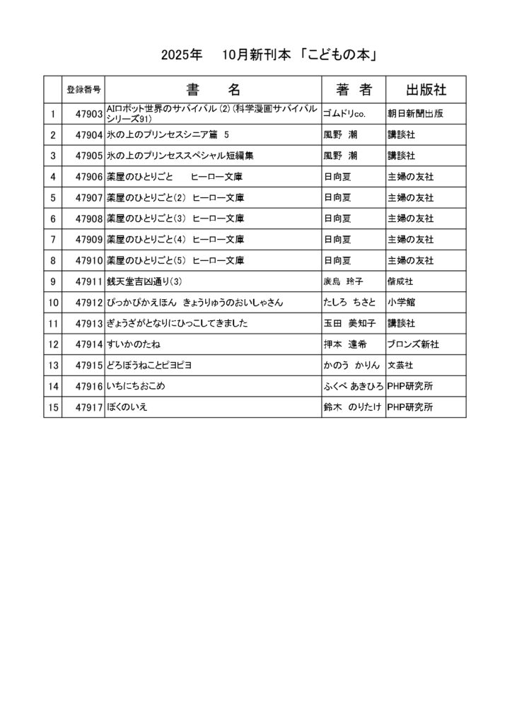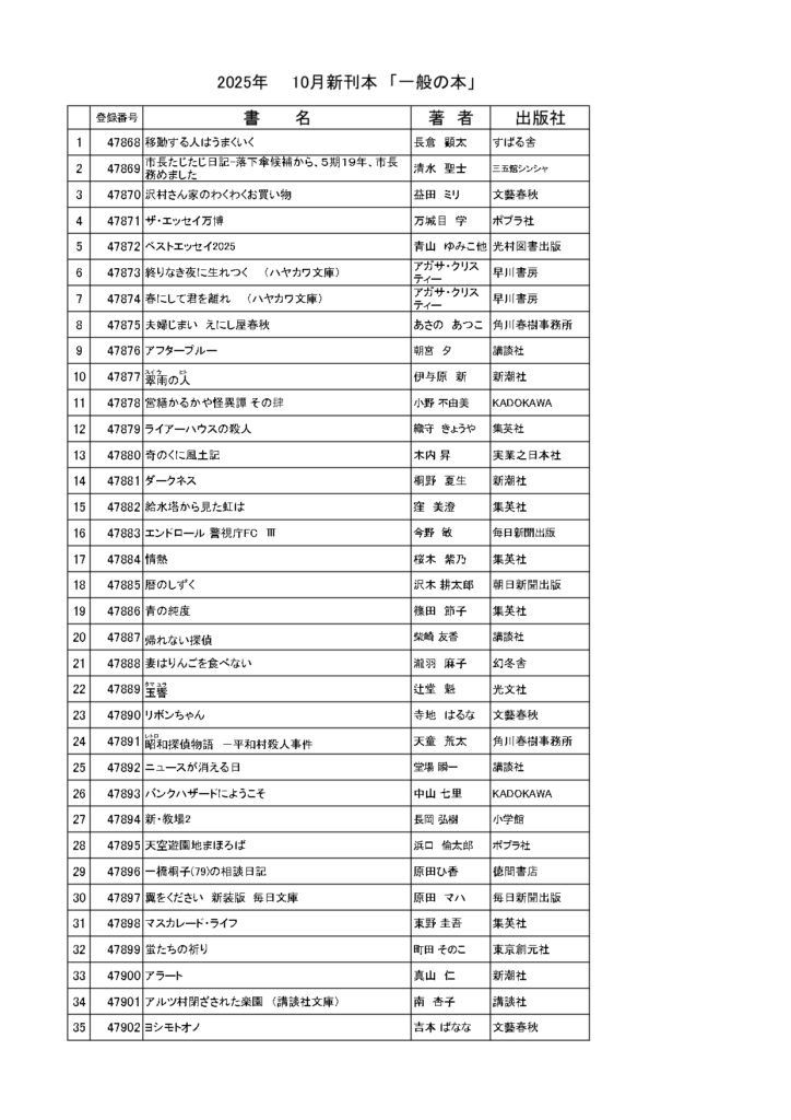 10月の新刊のご案内です。話題の新刊、ご要望のあった新刊が入荷しています。この機会にお立ち寄りください。