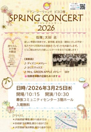 3月25日(水)ママンシーウィンドウピヨコ隊「スプリングコンサート2026」赤ちゃん・お子様大歓迎!