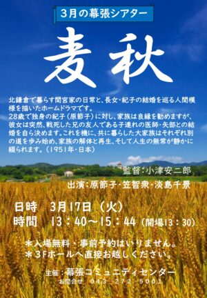 3/17(火)の幕張シアターは、「麦秋」を上映します!