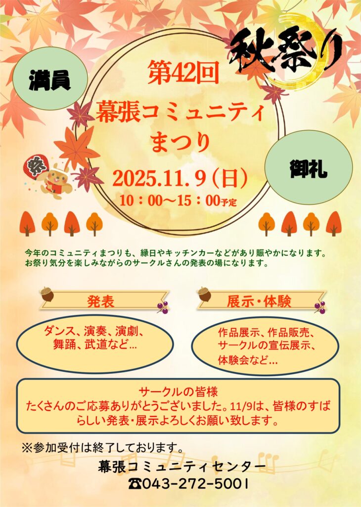 【11月9日開催】「第42回幕張コミュニティまつり」