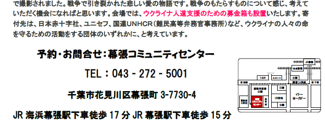 ご予約・お問合せ:幕張コミュニティセンター TEL:043‐272‐5001
