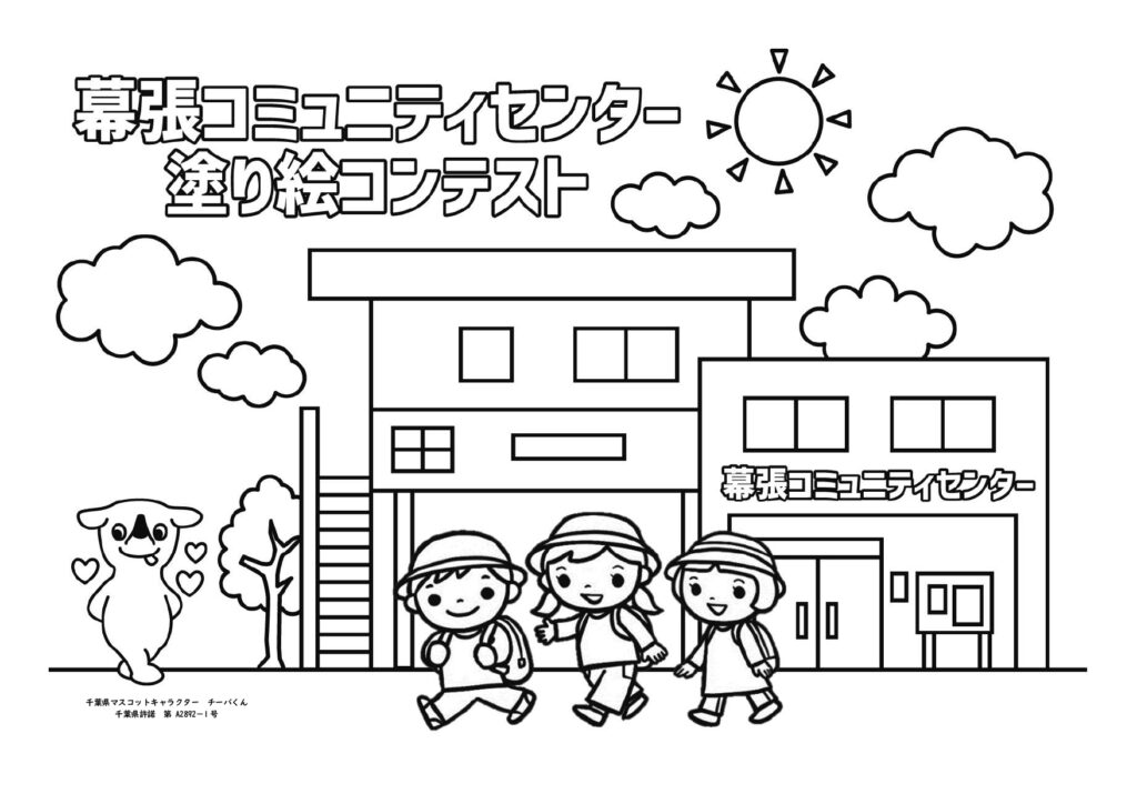 1月6日(土)から幕張コミュニティセンター「1F ロビー」に、チーバくんの塗り絵を置きます。完成した塗り絵のロビーでの掲示は、1月10日から♪みんなで参加してね♪