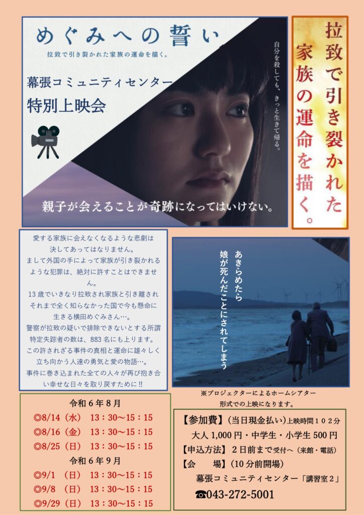8月・9月「めぐみへの誓い」特別映画上映