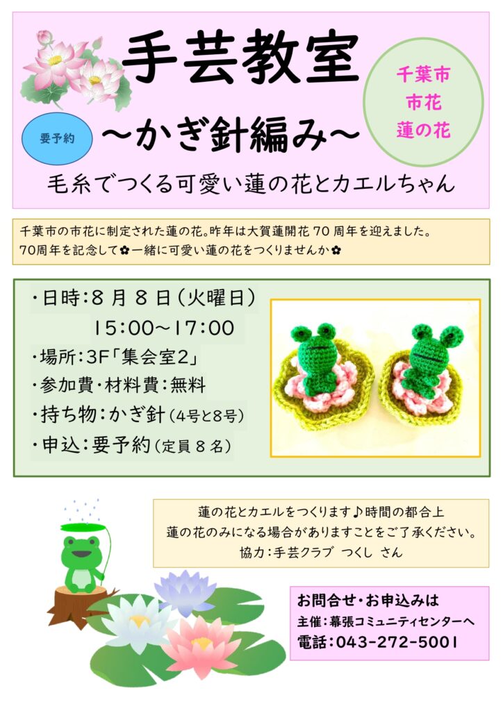 8月8日(火)大賀ハス開花70周年記念-毛糸でつくる可愛い蓮の花とカエルちゃん✿