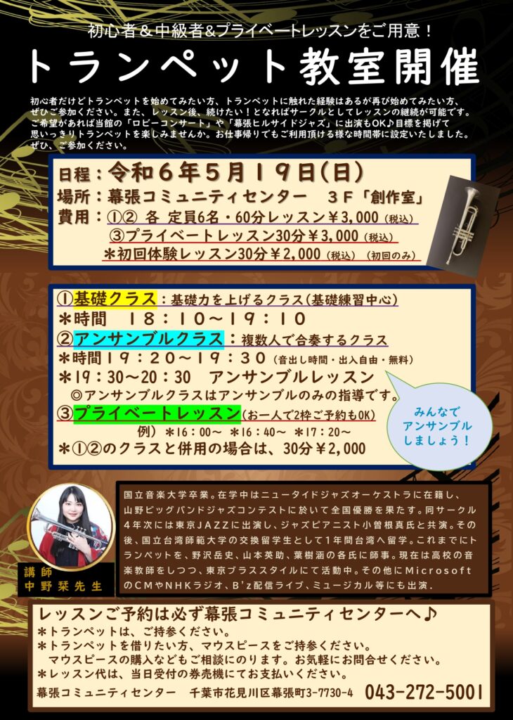 5月19日(日)第4回トランペット教室開催!