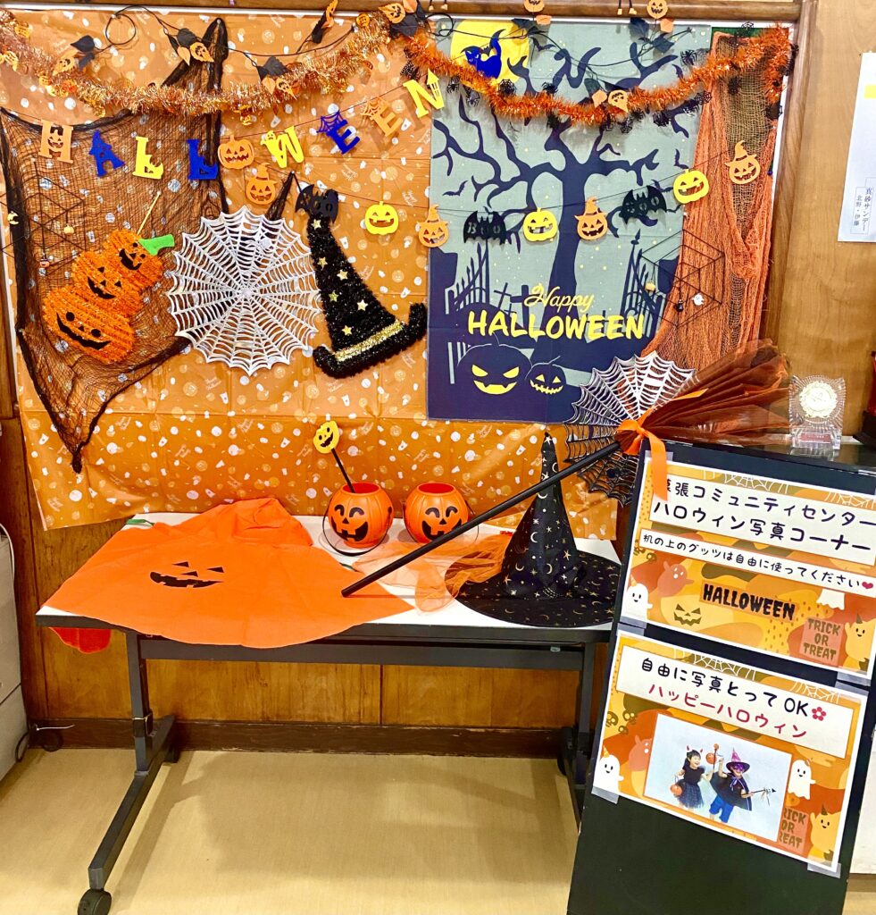 幕張コミュニティセンター 1階「ロビー」にて ハロウィンスペースが出来ました。机にあるグッズで、素敵に自由に写真撮影してね。10月29日(日)10:00~12:00頃に遊びにきたら、ちょっといい事あるかも…♪待ってまーす♪