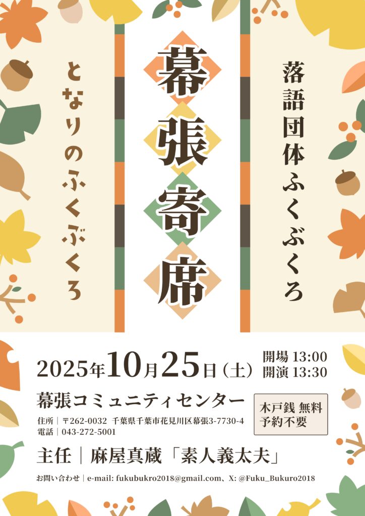 10月25日(土)幕張寄席~FUKUEMON落語・大喜利・漫才~「落語団体ふくぶくろ」