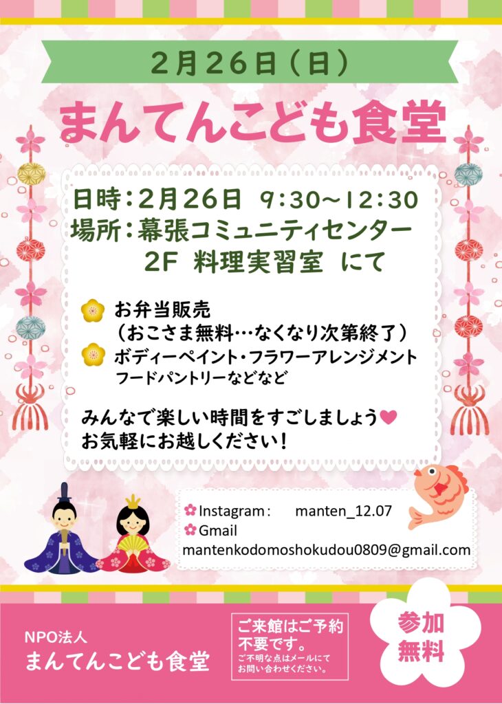 2月26日(日)まんてんこども食堂♪