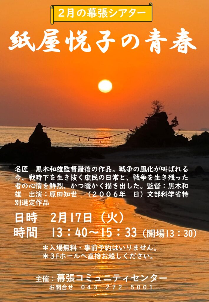 2/17(火)の幕張シアターは、「紙屋悦子の青春」を上映します!