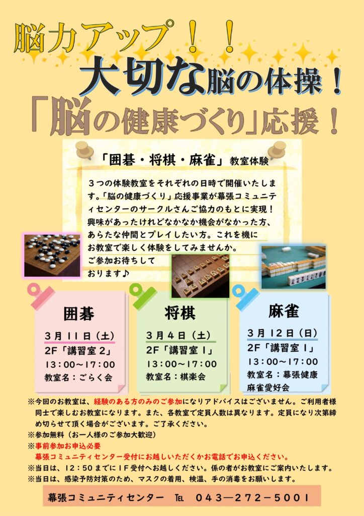 3月イベント「能力アップ!「脳の健康づくり」応援(囲碁・将棋・麻雀)教室