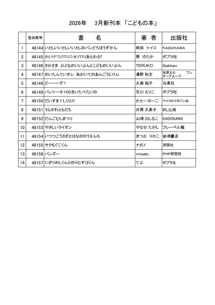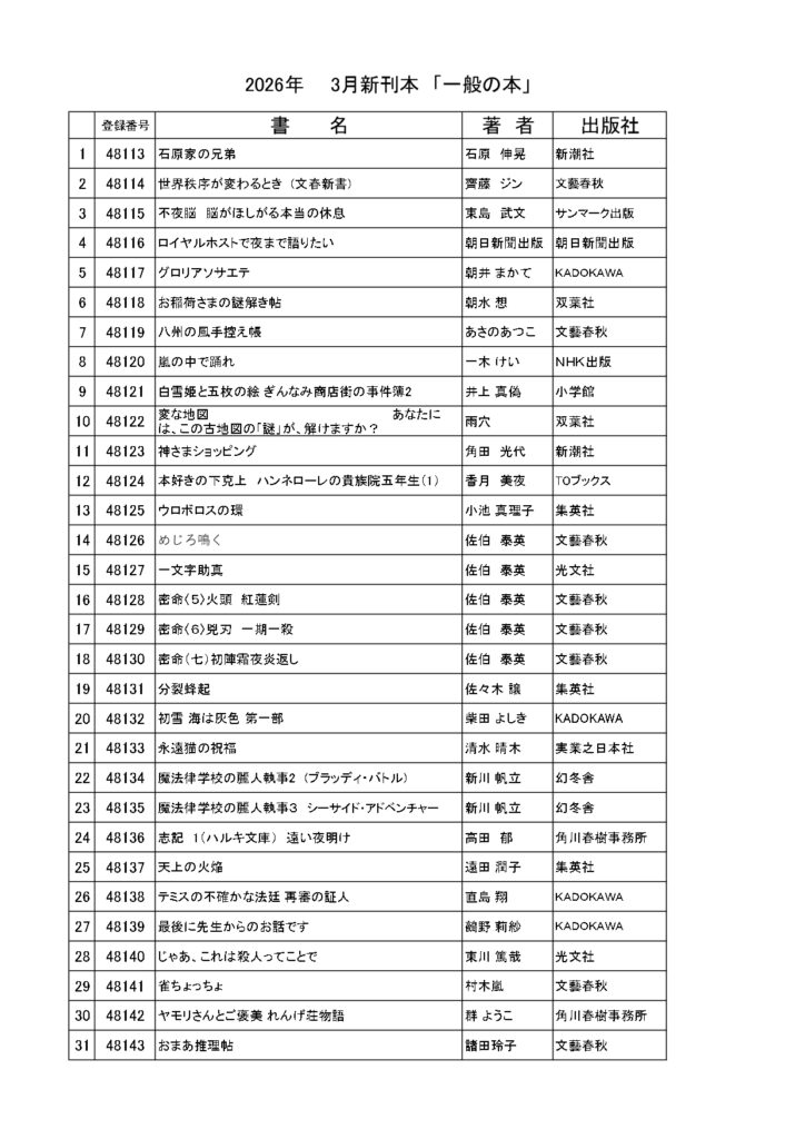 令和8年3月の新刊本