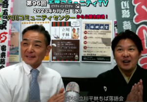 立川流落語家 真打 立川平林 師匠をゲストに、第96回千葉コミュニティTVを穴川コミュニティセンターから公開生放送!第4回立川平林ちば独演会「談志の一言気金鉄の如し」開催直前番組でした。 防犯落語・勘定板のほか、安木節ど […]